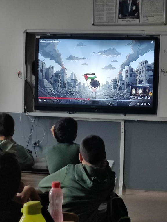 Etkinlik kapsamında tüm sınıflarda, öğrencilerimize Filistin’de yaşanan insani durum ve barışın önemi hakkında farkındalık oluşturmak amacıyla kısa bir video izletildi. Ardından öğretmenlerimiz rehberliğinde konu üzerine paylaşımlar yapılarak öğrencilerimizle anlamlı bir değerlendirme gerçekleştirildi.